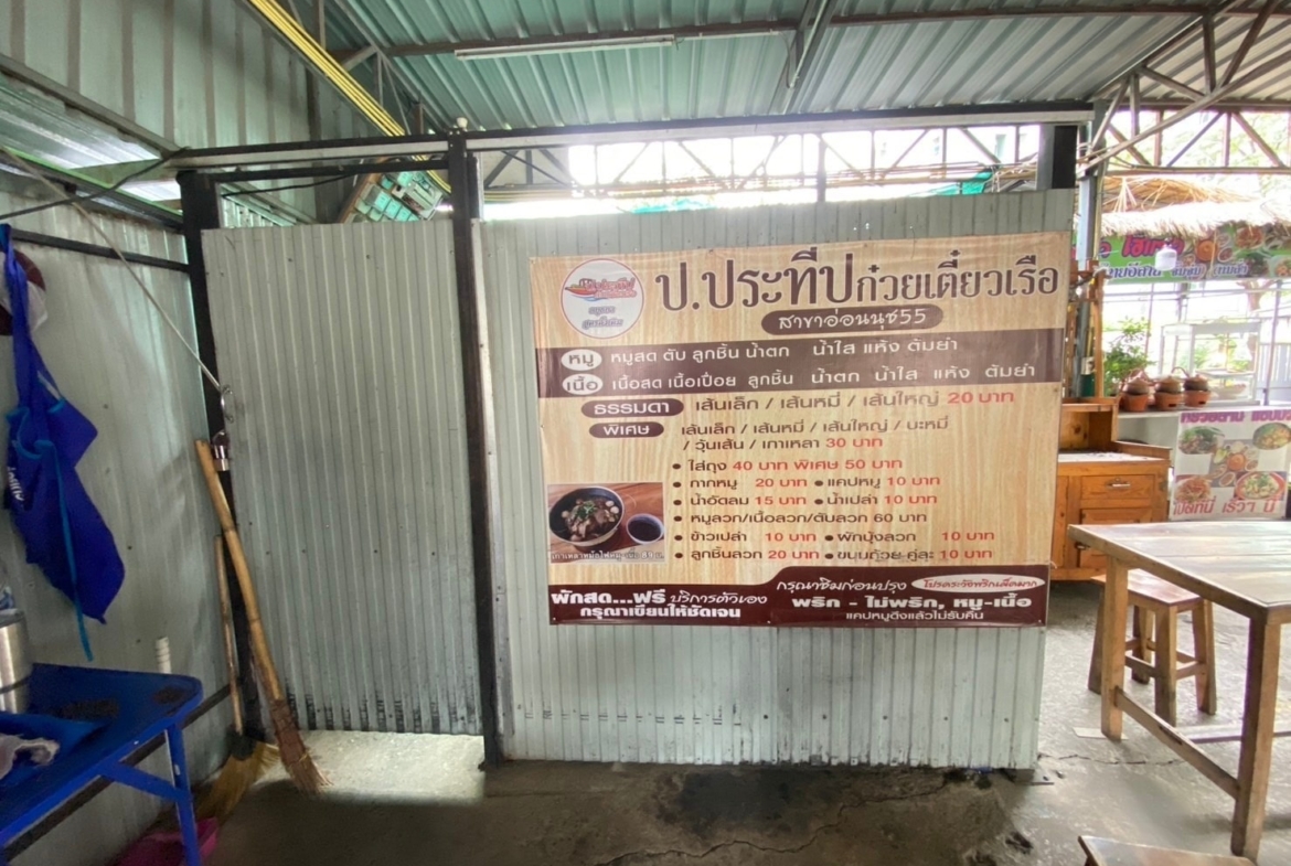 เซ้งร้านก๋วยเตี๋ยวเรือ อ่อนนุช 55 พร้อมสูตร พร้อมอุปกรณ์ ติดถนนใหญ่ มีที่จอดรถ เพียง 100,000 บ