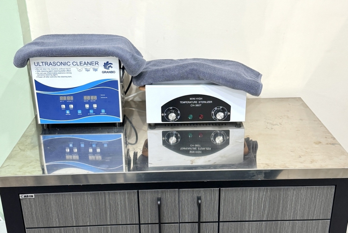 -เครื่องทำความสะอาดและฆ่าเชื้ออุปกรณ์ทำเล็บ Ultrasonic 1 ตัว, Dry Heat(Mini) 1 ตัว