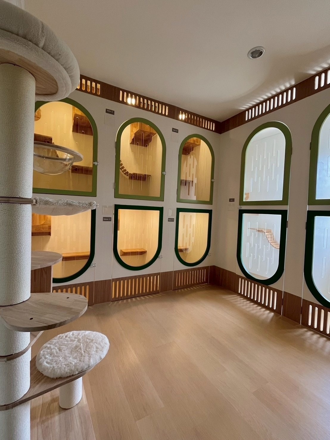 – มีห้องพักแมว 26 ห้อง ชั้น 1 และ 2